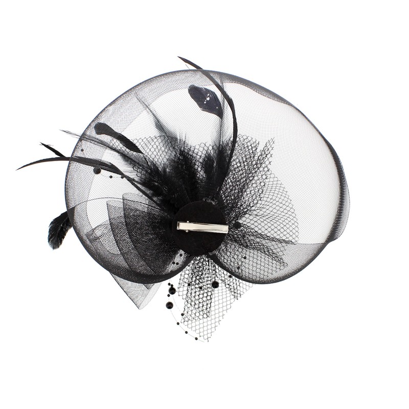 Zac's Alter Ego Lace & Net Fascinator with Feathers on Clip