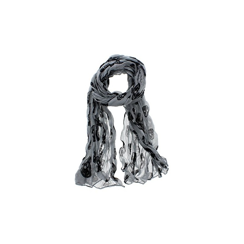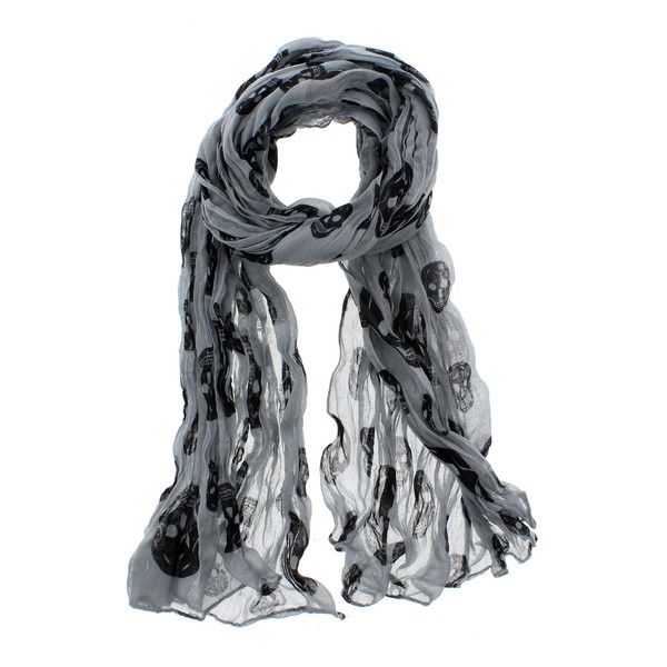 Zac's Alter Ego Long Lightweight Skinny Wrinkled Scarf with Skull Print