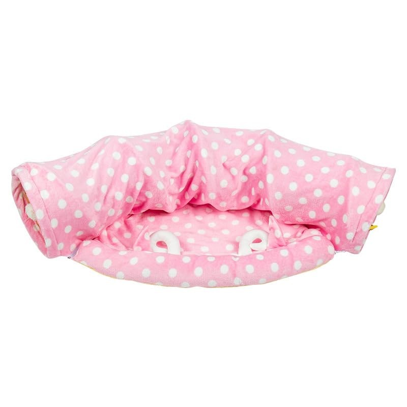 Zacal Pet Tunnel With Bed | Soft Plush Cave Toy | Cat Collars (Pink Polka Dots)