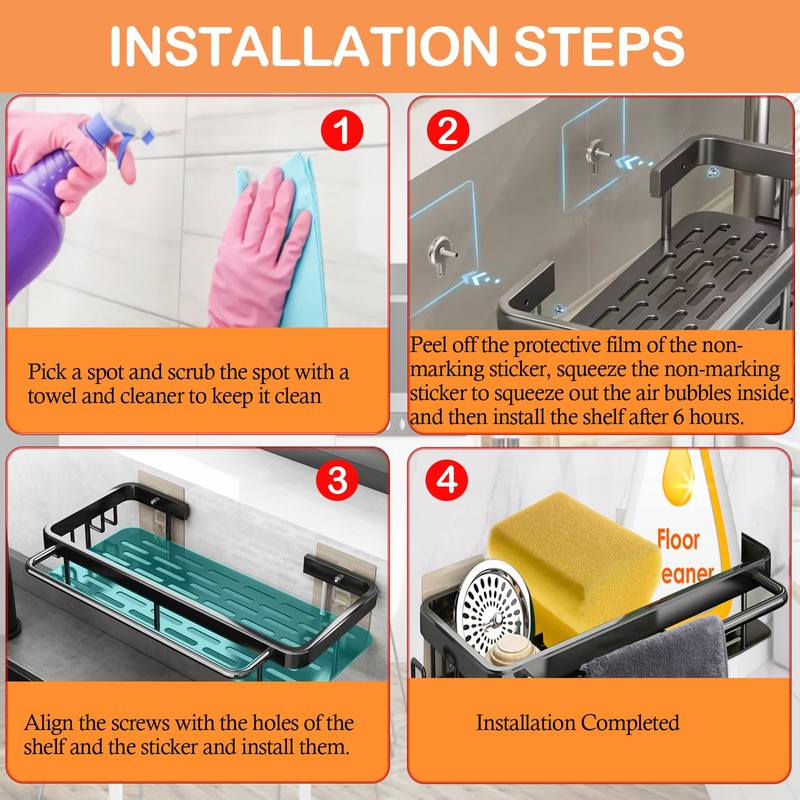 • Multifunctional kitchen organiser: Are you still worried about the small and messy kitchen sink? Try this hanging sink organiser for the sink now! It can be quickly attached to the wall and can hold sponges, rags, soap bottles, sink plugs, hand soap, etc. This sink organiser with towel rail and sturdy hook helps you eliminate the messy sink and save space at the same time!