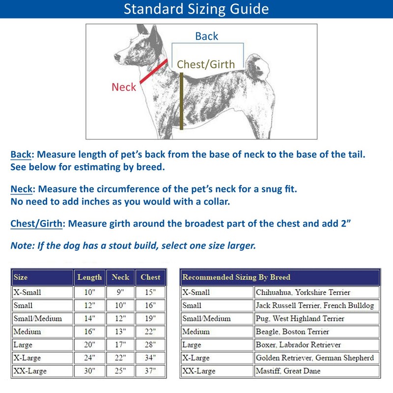 Material: 65% polyester, 35% cotton Size: Small 10" neck, 16" chest, 12" length Care: Machine wash in cold water on a gentle cycle. Line dry.