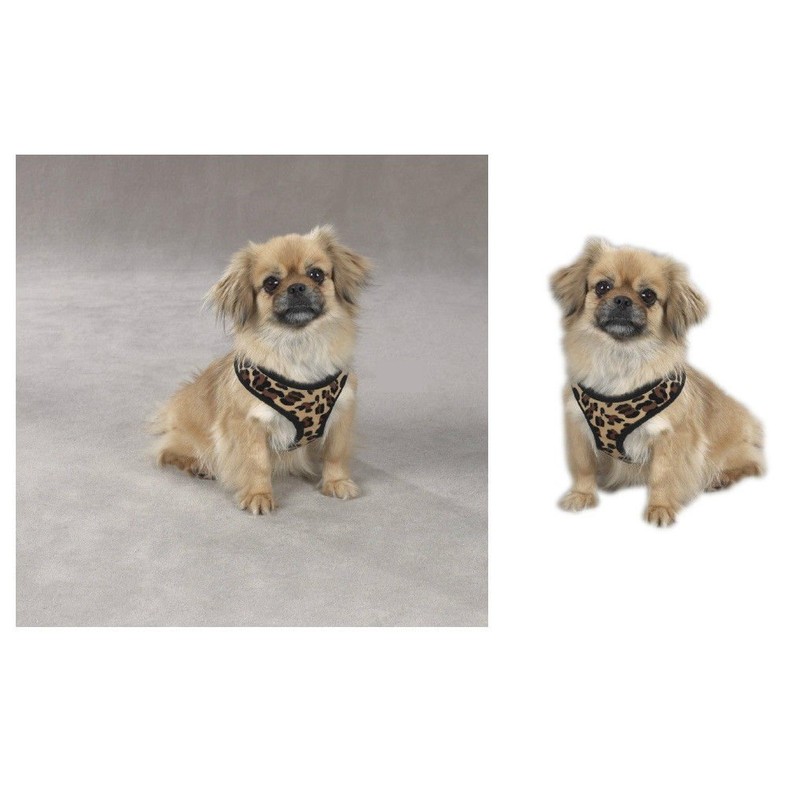 - Type:Chest Plate Harness, Material:100 % Polyester, Model:Animal Print Plush, Color:Brown, Tan, Black, Patternname: Leopard Print