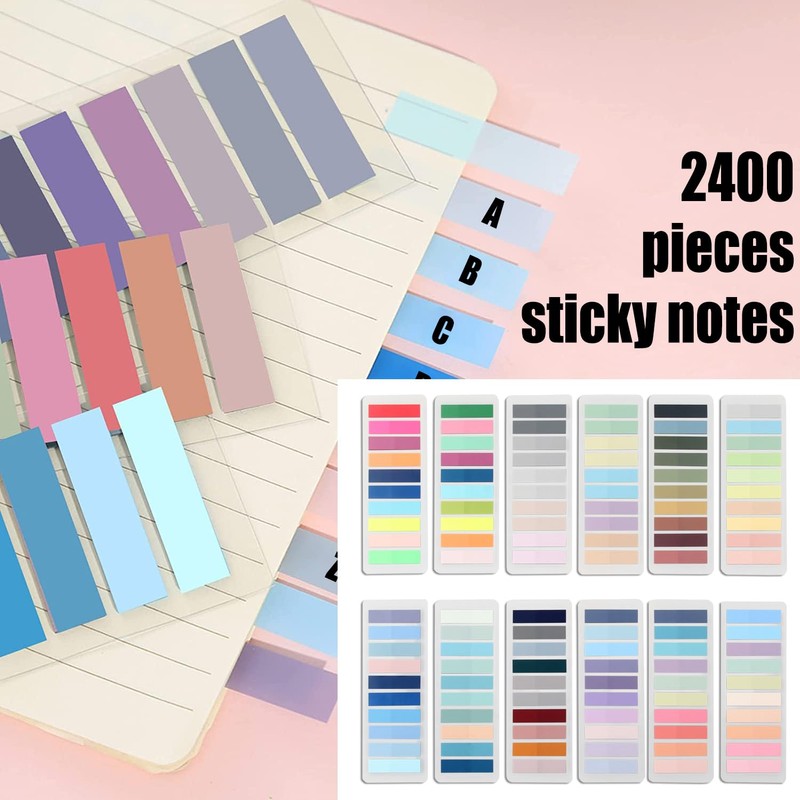 Zadanle 2400Pcs Sticky Note Tabs, Writable Morandi Translucent Book Markers Tabs, Repositionable Book Flags Strip, Book Annotation Supplies, Annotation Tabs, Page Markers (2400)