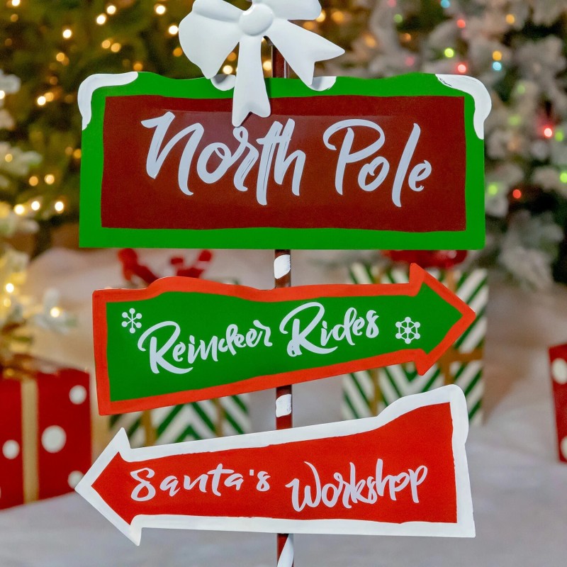 - Includes three directional signs: "North Pole", "Reindeer Rides", and "Santa's Workshop"