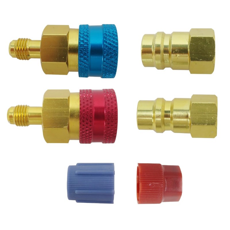R-134a adapters with r134a convert to r-1234yf adapters ideal for connecting with basic or advanced manifold gauges and serving on automotive air conditioner refrigerant recharge work.