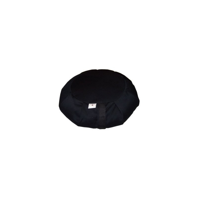 - 14 inch Zafu meditation cushion in a solid Black organic canvas casing