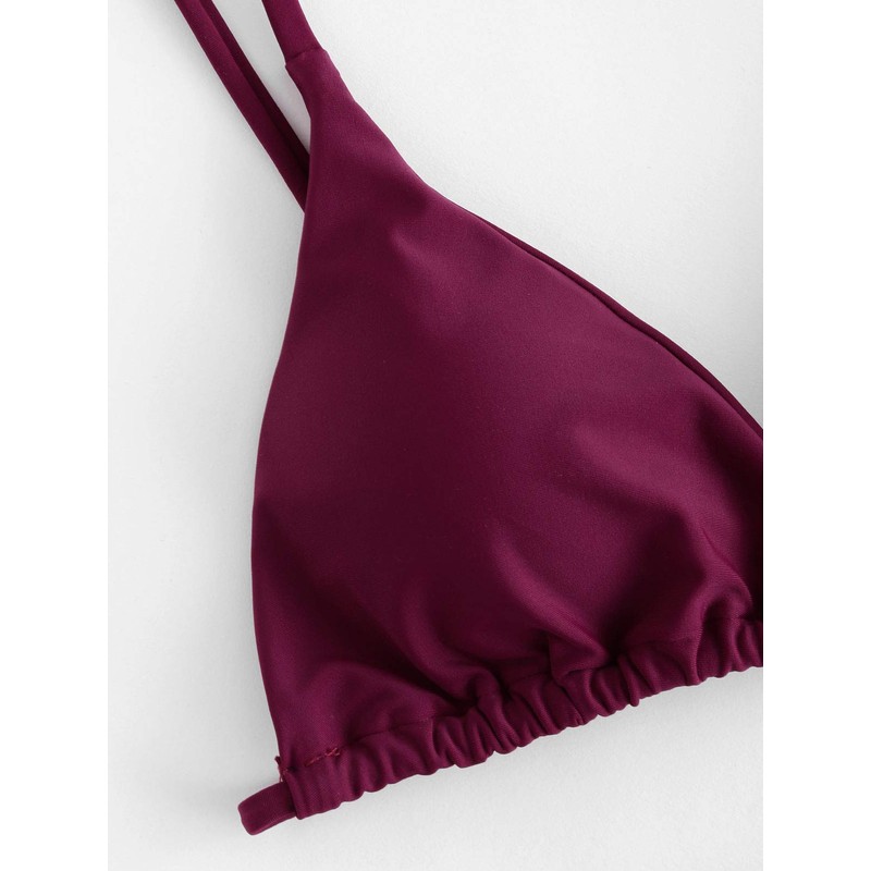 - - Bikini top: Adjustable spaghetti straps, padded bra. Bikini bottoms: Tie side, low waist.