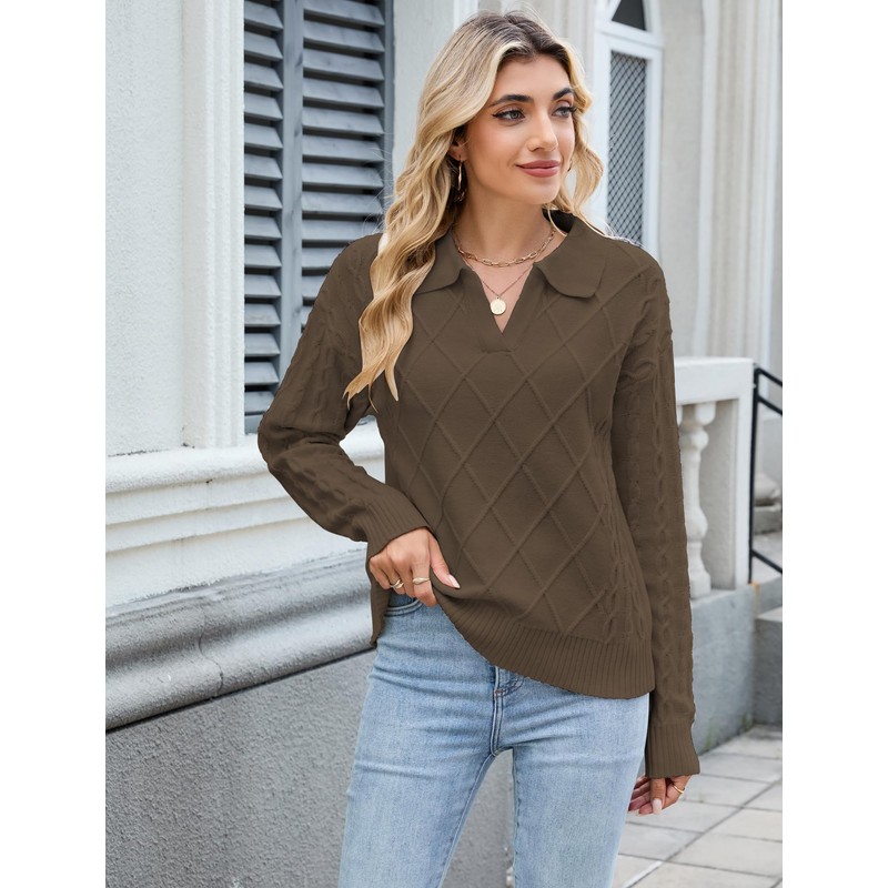 - Unique Design: This women's cable knit sweater adopts a lapel V-neck, long sleeves, and a checkerboard pattern design, which is an innovation based on the classic style