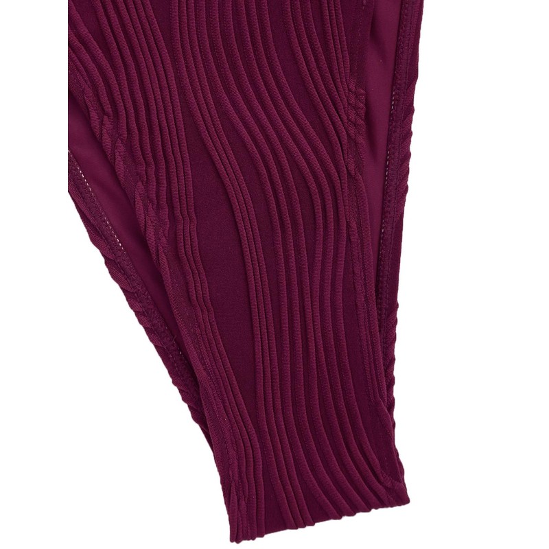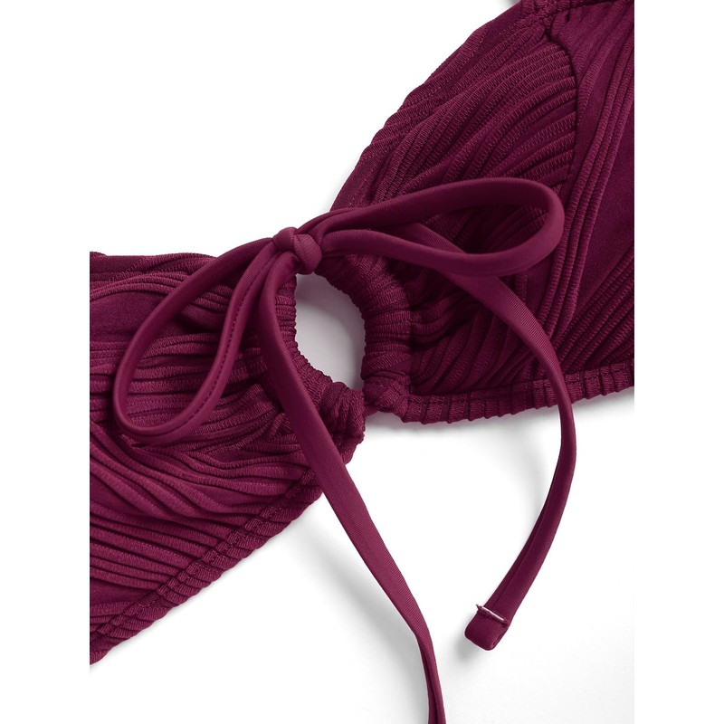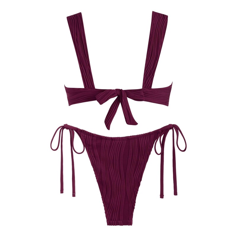 ZAFUL Women's Cinched Bikini Solid Color Wave Textured Knotted Tied Side Two Piece Swimsuit Bathing Suits (Deep Red, M)