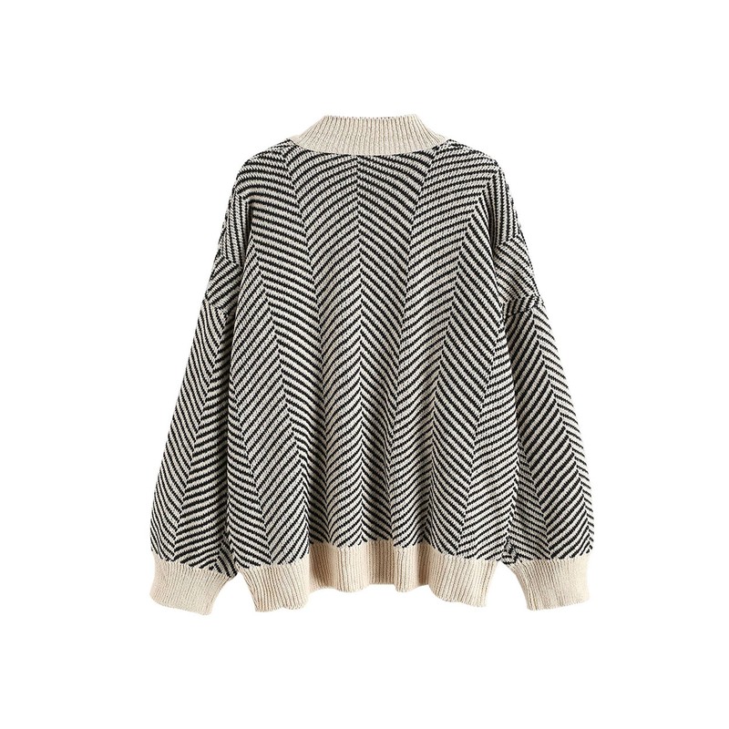 ZAFUL Women's Striped Cardigan Long Sleeve Button Up Open Front Knit Oversized Sweater (0-Stripes)