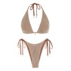 ZAFUL Women's Triangle Bikini Multiway Fishnet Side Tied Bandeau Halter String Bikini Set Two Piece Swimsuit Swimsuits, 1 coffee, S