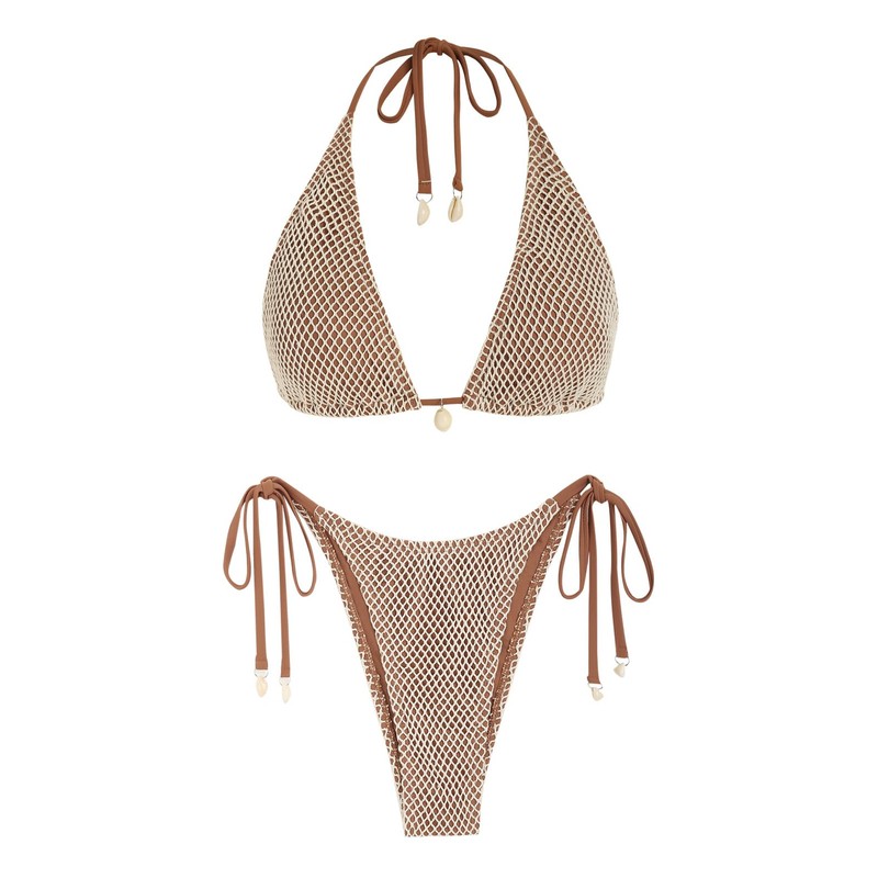 - UNIQUE DETAILS The mesh details and shell embellishments give this bikini a unique and eye-catching look, which is perfect for lounging by the pool or going to the beach.