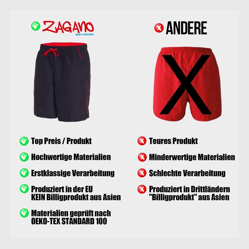 - Zagano men's swimming trunks are water-repellent and quick-drying. Elastic waistband with adjustable drawstring allows a better fit, possible 8-15 cm stretch.