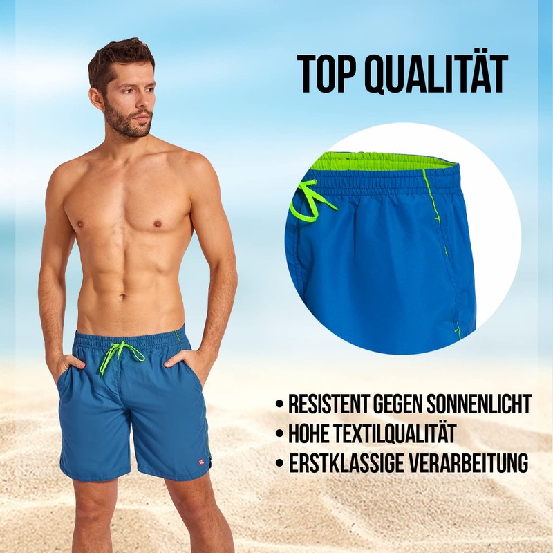 - Versatile: thanks to the wide waistband with drawstring, the swimming trunks have a reliable fit when swimming and jumping into the water. These shorts are also very suitable as leisure or fitness trousers.