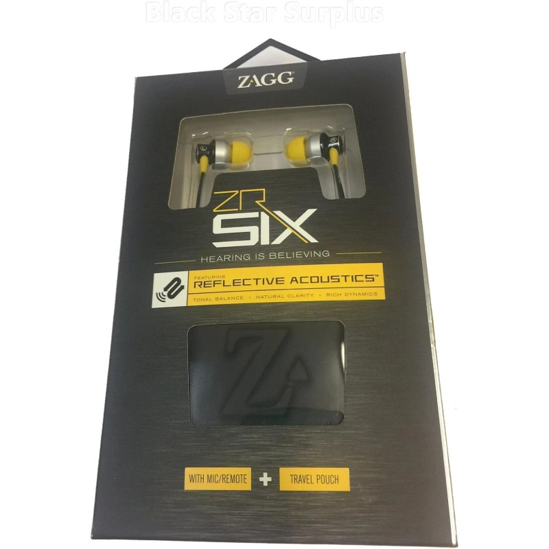 Elevate your audio experience with the Zagg ZR Six wired earbuds, designed to deliver crisp, clear sound for your mobile and cellular devices. The sleek black and yellow earbud set includes a microphone and remote, ensuring seamless operation and reflective acoustics for an enhanced audio experience.Constructed for comfort and convenience, these in-ear earbuds feature a 3.5mm connector, compatible with a wide range of devices. The double earpiece design and in-ear fit provide immersive sound, making the Zagg ZR Six a perfect accessory for anyone on the go.