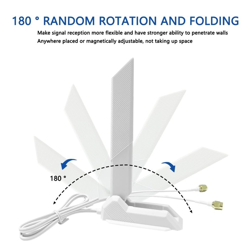 - 2.4G/5G/6G WiFi6e antenna;Double RP-SMA Connector, Cable length 80cm, Support Bluetooth, Support various PCI-E wireless network cards.tri-band extension cable antenna with magnetic attraction.