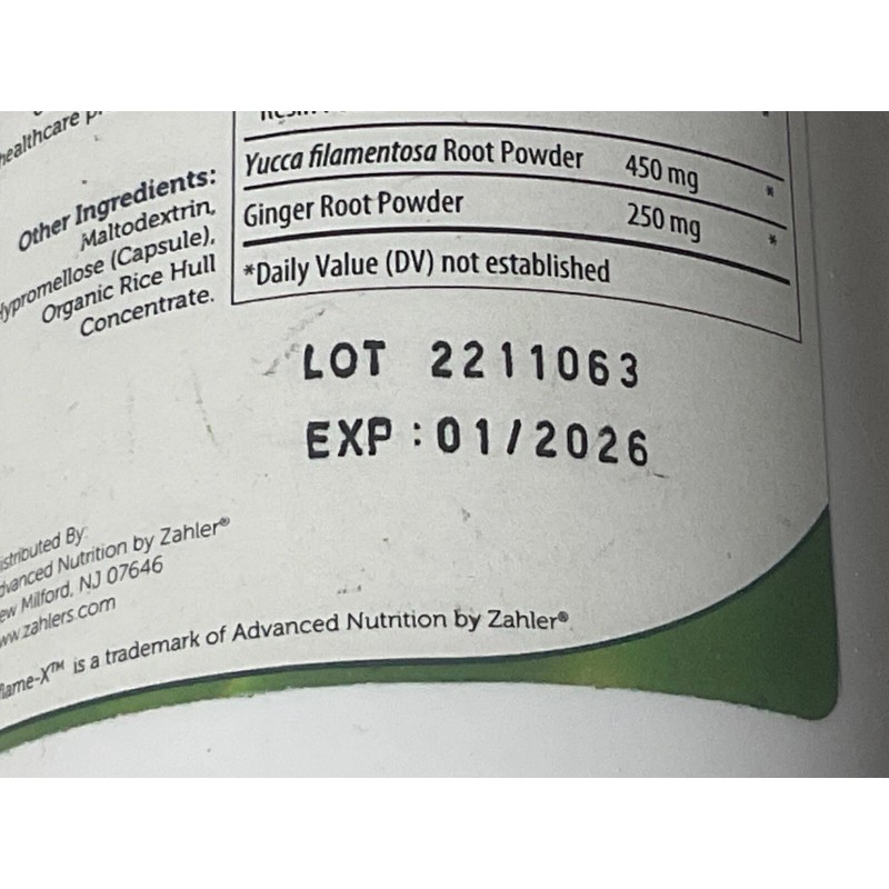 Zahler Inflame-X Inflammatory Response & Pain Support - 120 capsules - 01/2026