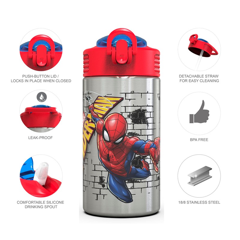 Zak Designs SDNU-S732 15 oz Botella de agua de acero inoxidable, multicolor