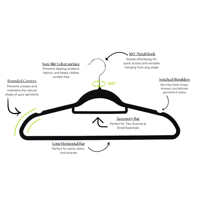 - With a 360-degree swivel hook and notched shoulders, these closet essentials, heavy-duty hangers are ideal as Pants hangers, Jean Hangers, shirt Hangers, Suit Hangers for men, suit hangers for women, shirt hangers for women, lingerie hangers, dress hangers, t shirt hangers, skirt hangers space saving, youth hangers, dress hangers for women , outfit hangers, bulk clothes hangers, dorm hangers, dorm closet organizer, hangers for sweaters, hijab hanger, cascading hangers, flocked hangers, jacket hanger, slim hangers, adult hangers, black felt hangers, providing a versatile clothing organizer solution.