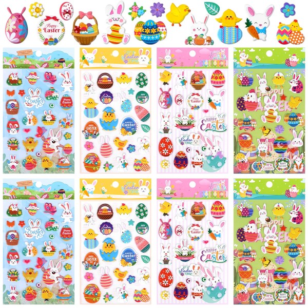 ZALAON Easter Eggs Stickers, 8 Sheets of 3D Easter Stickers, Children's Stickers, Easter Bunny, Easter Eggs, Easter Chicks for Easter Decoration or Gift