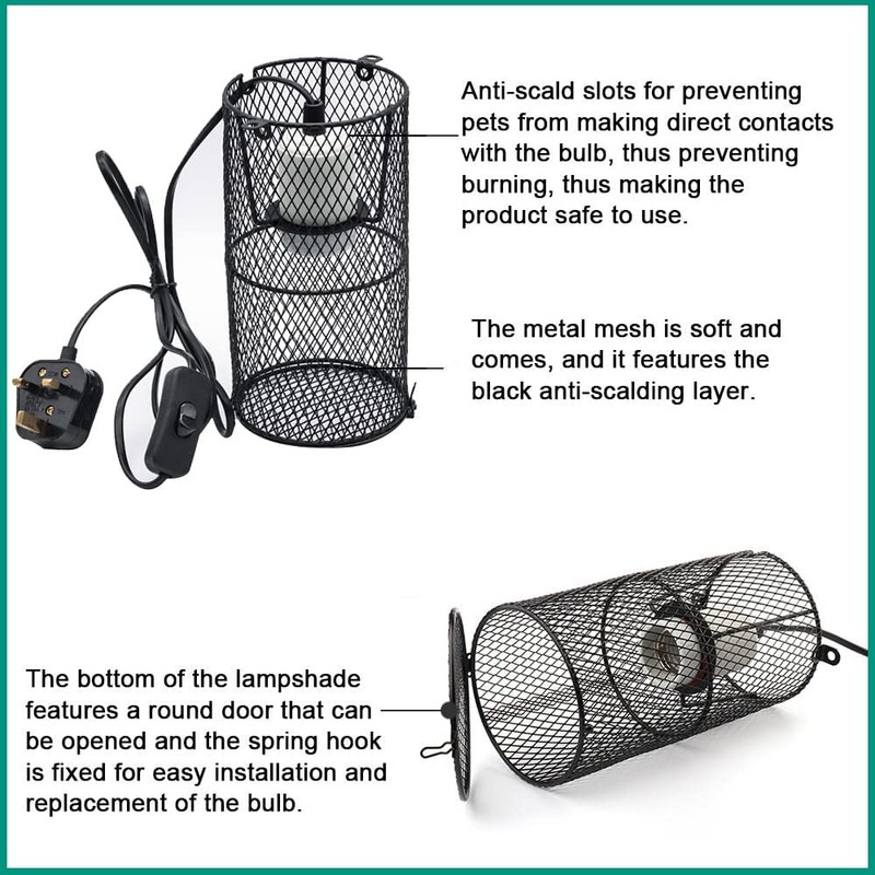 • Made of metal which is durable. Good protection for your pets to keep away from the heat lamp.