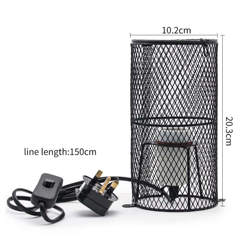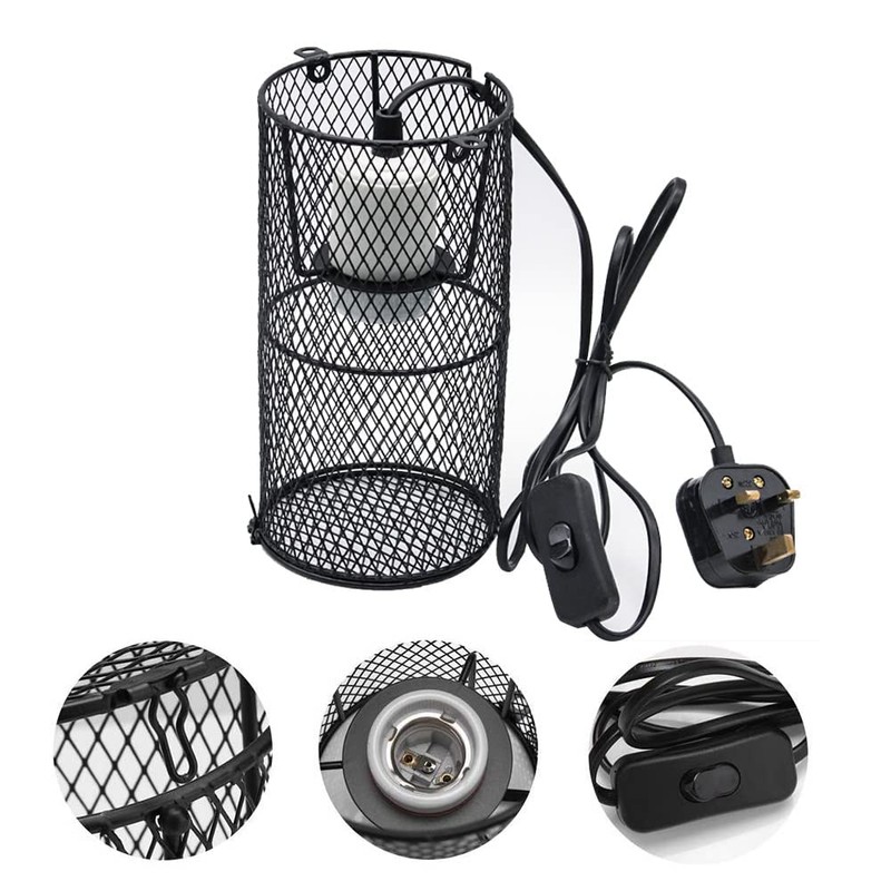zalati Heating Lamp Socket with Lampshade Lighting Guard Anti Hot Bracket Cage Holder for Reptiles Pets Protection - 200W