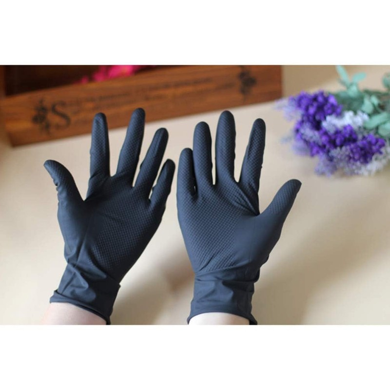 Made of latex, which is durable and a good protection for your hand. Anti-slip design for easy use without worries. It is reusable with the black colour, which is obvious to see the usage situation for the need to replace. These are chemical resistant gloves that protect your hands from aggressive detergents, hot water, household cleaners, bleaches and dyes en.< br/Not only for dyeing hair, but also for cleaning, painting, pet care, DIY, crafts and gardening. Size: 23 x 9 cm / 9.3.5 inches.