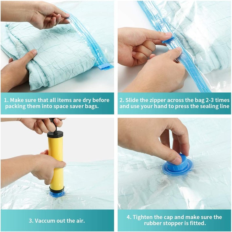 - They are space savers for storage, with which you can put away your seasonal clothes, comforters and blankets, pillows and more. Create 80% more space easily.