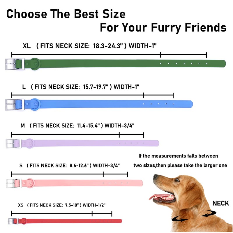 - 【ADJUSTABLE】- with high quality rustproof pin buckle, our waterproof dog collar has 5 holes to adjust its length and fit perfectly on any dog or puppy from a chihuahua to a shepherd dog without sliding.
