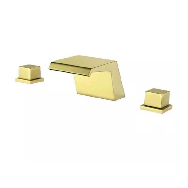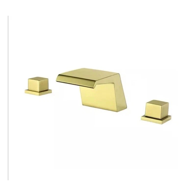 Zalerock Waterfall 8 in. Widespread 2 Square Handle Bathroom Faucet Brushed Gold NEW