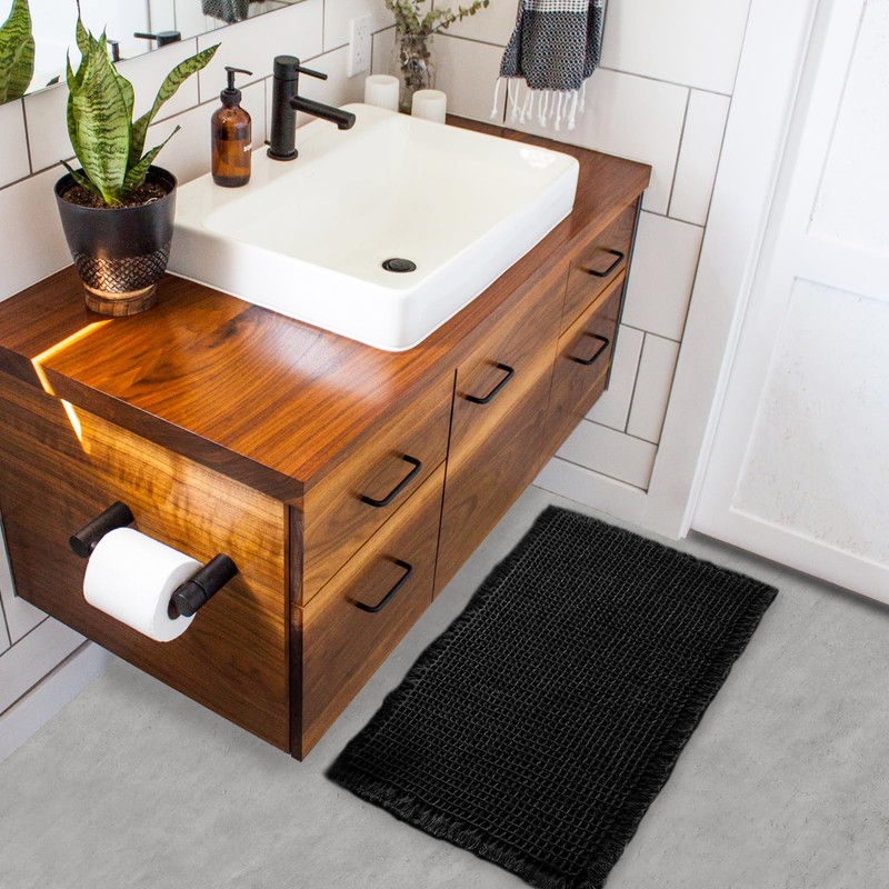 ZALL Waffle Bath Mat Black Super Absorbent Non Slip Bathroom Rug,Rhombus Geometric 24x48inch,Machine Washable Ultra Soft Floor Mats