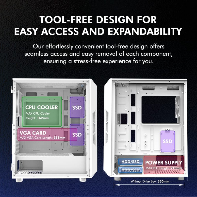 • Hinged Glass Side Panel: Experience effortless style and functionality with the Hinged Glass Side Panel. Its beautiful, full edge-to-edge tempered glass design swings open for quick access to your interior components, making installation and cleaning a breeze.