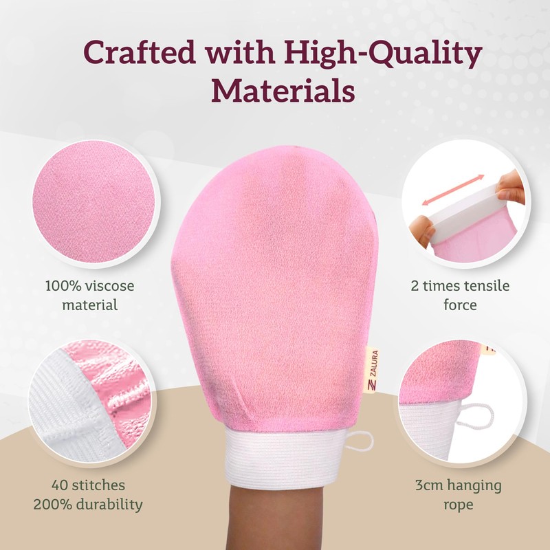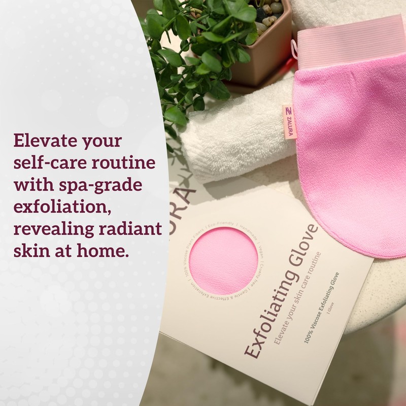 - Key Features: Deep Exfoliation: Smooth away dull, dry skin to reveal a brighter, more youthful complexion. Premium Material: Made from 100% viscose, the glove offers just the right amount of texture for effective exfoliation without irritation. Versatile and Easy to Use: Ideal for all skin types, including sensitive skin, and suitable for use on your body, arms, and legs. Improves Skincare Absorption: Prepares your skin to absorb moisturizers, oils, and lotions more effectively. Reusable and Eco-Friendly: Durable and easy to maintain—simply rinse after use and hang to dry.