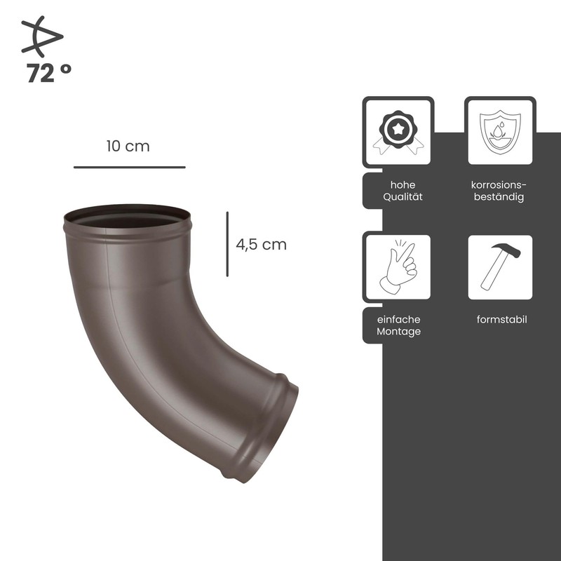 ZAMBELLI Downpipe Elbow 72 Degrees Galvanised with Bead DN 100 Copper Brown Pipe Elbow High Corrosion Protection Easy Installation without Soldering