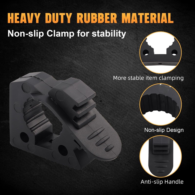 Compatibilidad: esta abrazadera de montaje de goma de liberación rápida se adapta a herramientas de 1-1/7 pulgadas a 1-3/7 pulgadas de diámetro, soporte para portaequipajes UTV, ATV, barcos, paquete de 4
