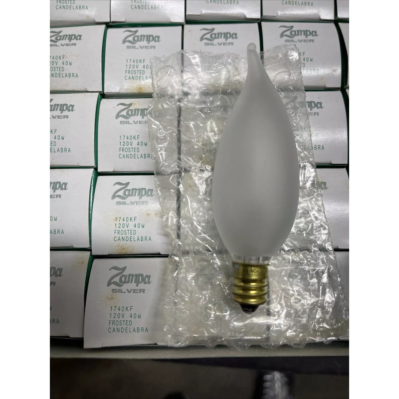 Zampa Silver 25 PCS 40 Watt 120 volt Candelabra base ZAMPA flame tip Frosted light bulbs