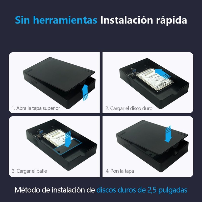 - Admite hasta 10 TB de discos duros: Esta carcasa para disco duro externo admite hasta 10 TB de discos duros, lo que proporciona espacio de sobra para almacenar grandes cantidades de datos. Tanto si trabajas con grandes conjuntos de datos como con extensas colecciones multimedia o proyectos complejos, la posibilidad de conectar y utilizar unidades de gran capacidad simplifica la gestión y el acceso a los datos.