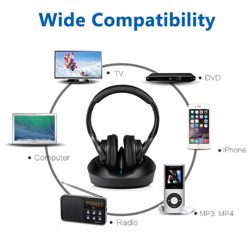 - 【COMPATIBILITY BEYOND YOUR IMAGINE 】Compatible with TVs, set-top DVD & Blu-Ray players, DVR's, satellite receivers, a/v receivers, laptops, mac/PC, computer, MP3 players, LCD, Plasma and standard televisions. These wireless TV headphones offer flexibility and compatibility with any devices with AUX/Digital Optical/Coaxial/3.5mm or RCA audio out ports.