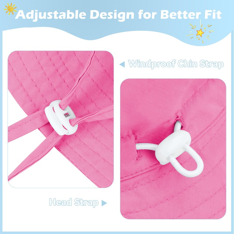 - High Quality Material: This baby sun hats are made of UPF 50+ ultraviolet sunscreen fabric (polyester fiber), which can block most of the strong light and ultraviolet rays. At the same time, the baby beach hat is also very soft and breathable, which can keep baby cool and comfortable. This baby bucket hat is the best companion for the whole summer.