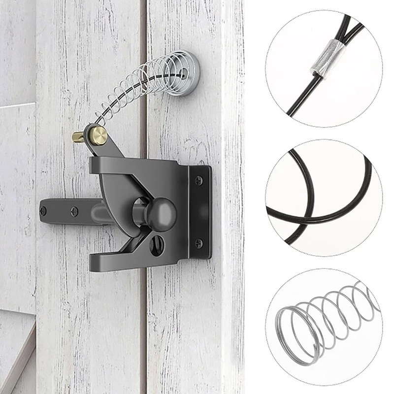- The gate latch cable pull is used in conjunction with the gate latch to make it easier to open or close the door from both sides. Very flexible and easy to adjust.