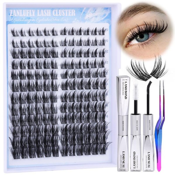 zanlufly Lash Extension Kit Fox Eye Lash Clusters Manga Cat Eye Lash Extensions C Curl Anime Lash Extension Kit Comestic Makeup#springtok:_Fox Eye Clusters