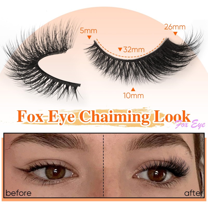 - Fluffy Fox Mink Lashes:The special fox-eye shape provides a visual eye lift, plus a fluffy, thick effect that makes you even more glamorous.
