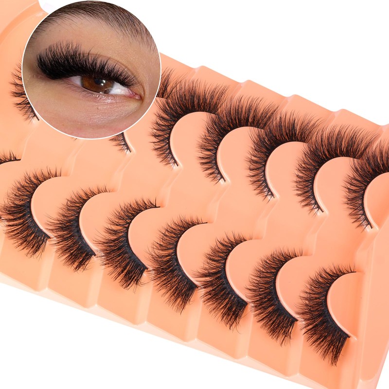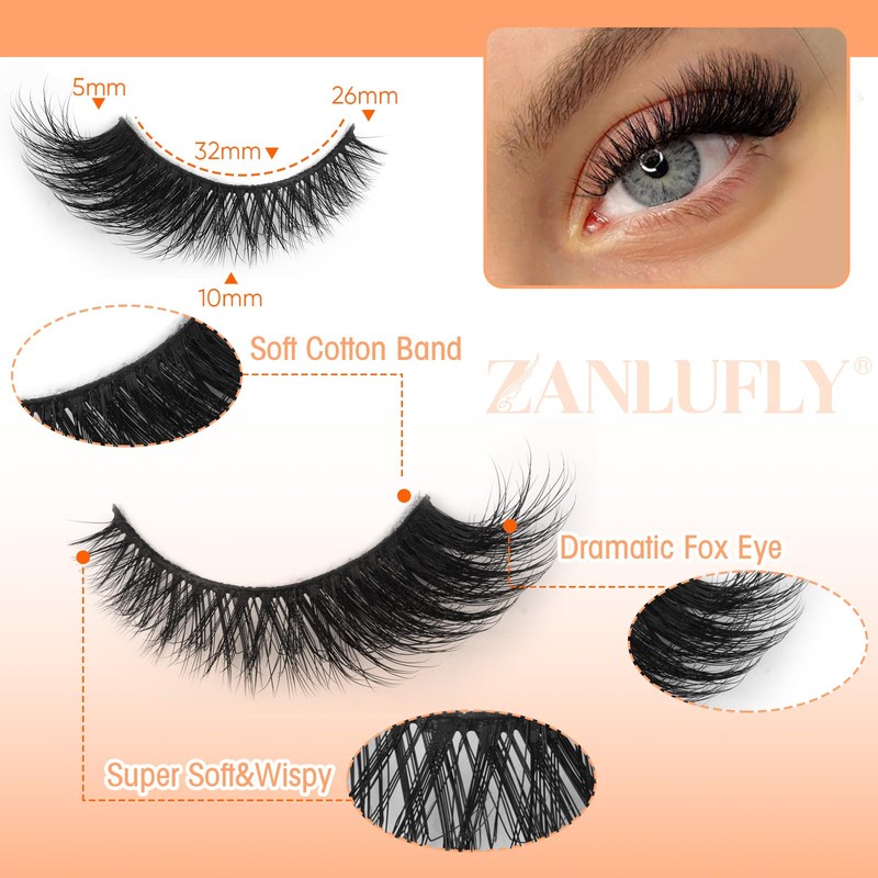 zanlufly Mink Lashes Cat Eye Fluffy False Lashes Fox Eye False Eyelashes Lashes Natural D Curl Volume Fake Eyelashes Soft Handmade Lashes that Look Like Extensions Lashes Pack