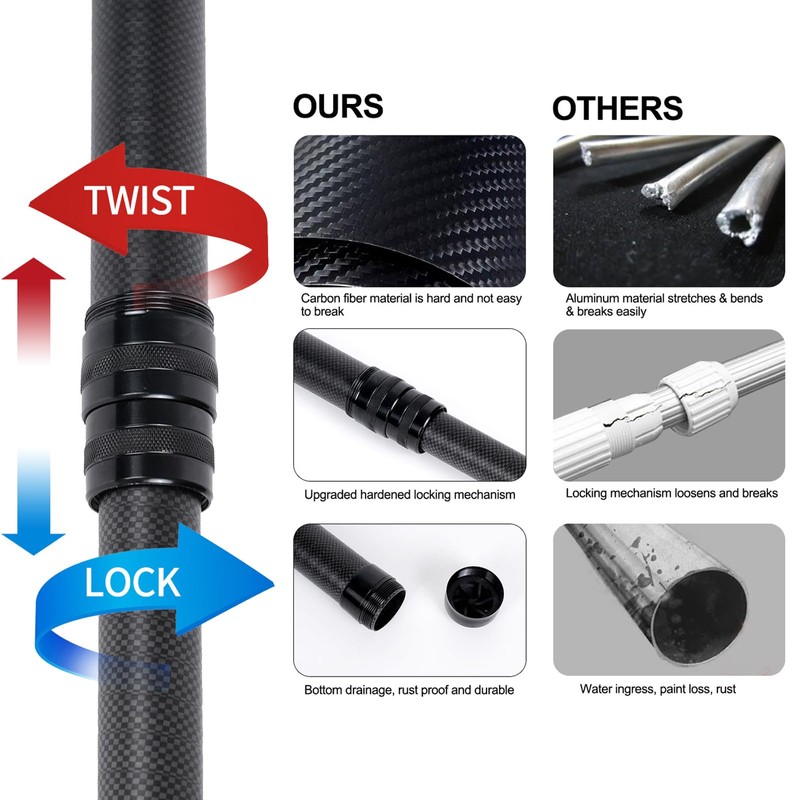Zanvxt 1.9 to 9.8ft Carbon Fiber Extension Pole. Multi-Purpose Pole with Universal Twist-on Metal Tip 、Paint Roller Extension Pole、Best Telescoping Pole for Cobweb Duster, Dusting and Window Cleaning