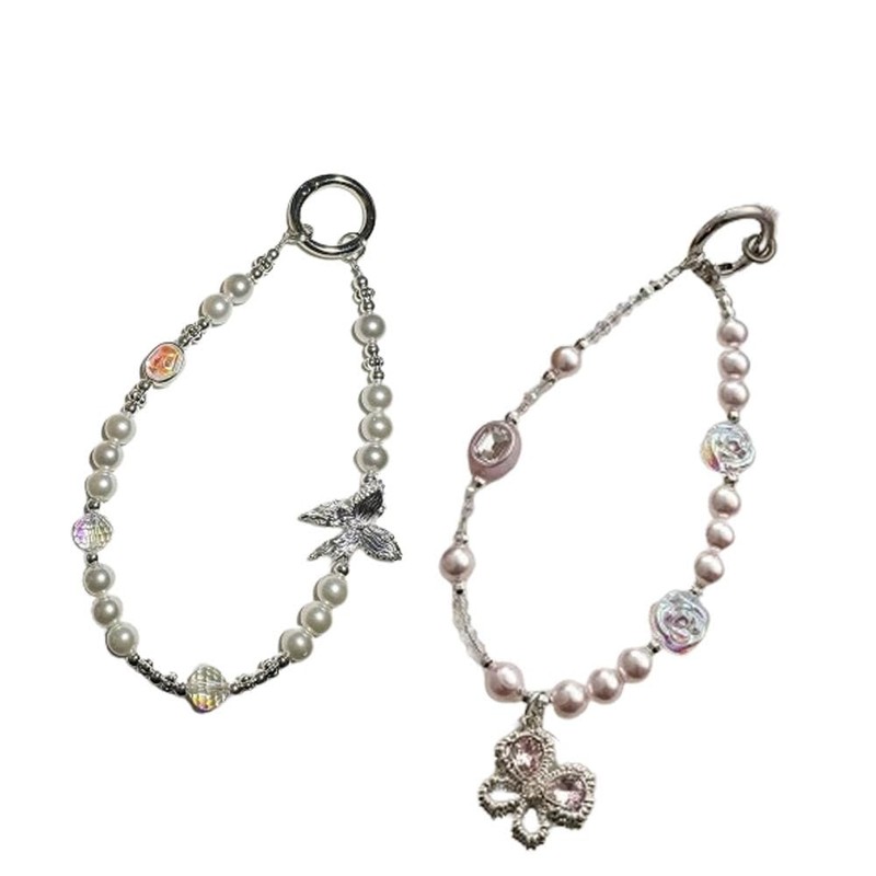 zaoalife 2pcs Phone Wrist Strap,Pearl Beaded Phone Charms,Phone Lanyard Phone Chain Crystal Butterfly Keychain for Wallet Camera