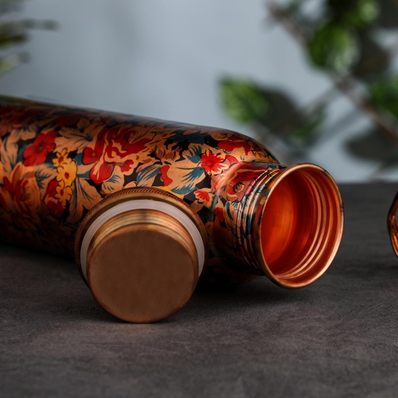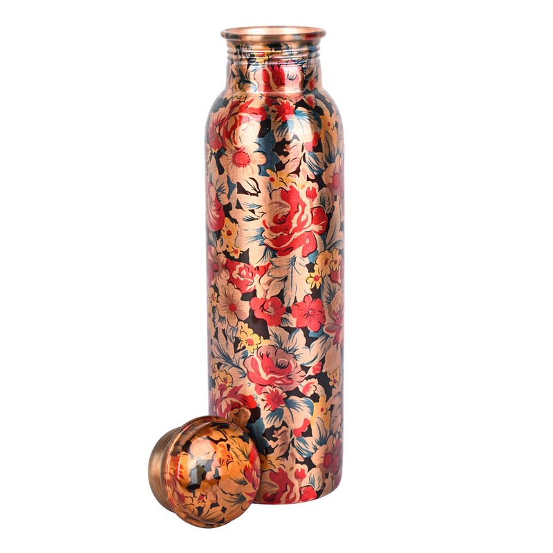 - Handmade floral graphic print copper bottle for drinking water make great gifts for men and women, wedding, anniversary gifts for mom and dad or husband, wife or can also be used as novelty addition to your existing bar collections.