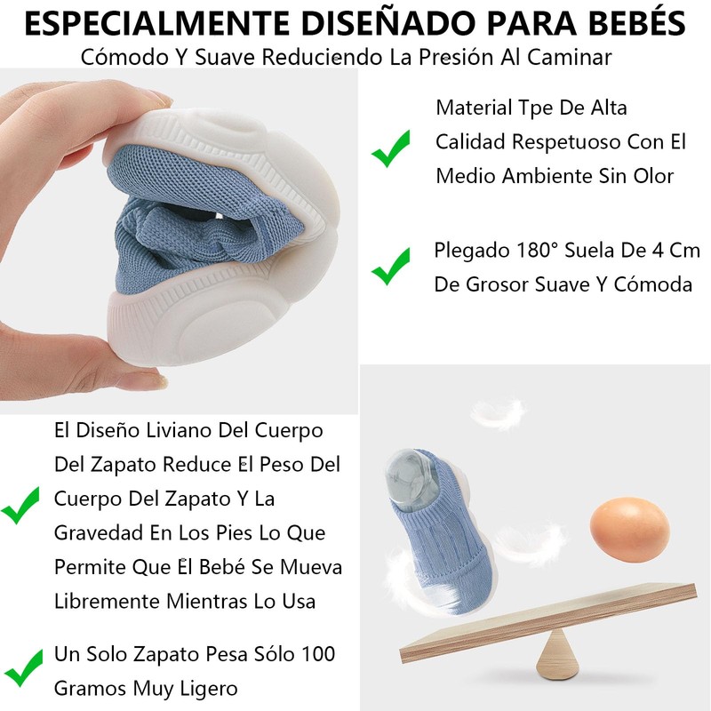 - [Puntera Con Diseño Anticolisión]Zapatos de malla transpirable para bebé La puntera adopta un diseño de arco ensanchado para que el antepié no apriete el pie.La puntera está diseñada con material TPE engrosado para proteger eficazmente los dedos de los pies del bebé.Evite lesiones por colisión
