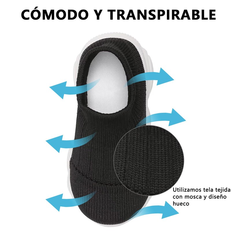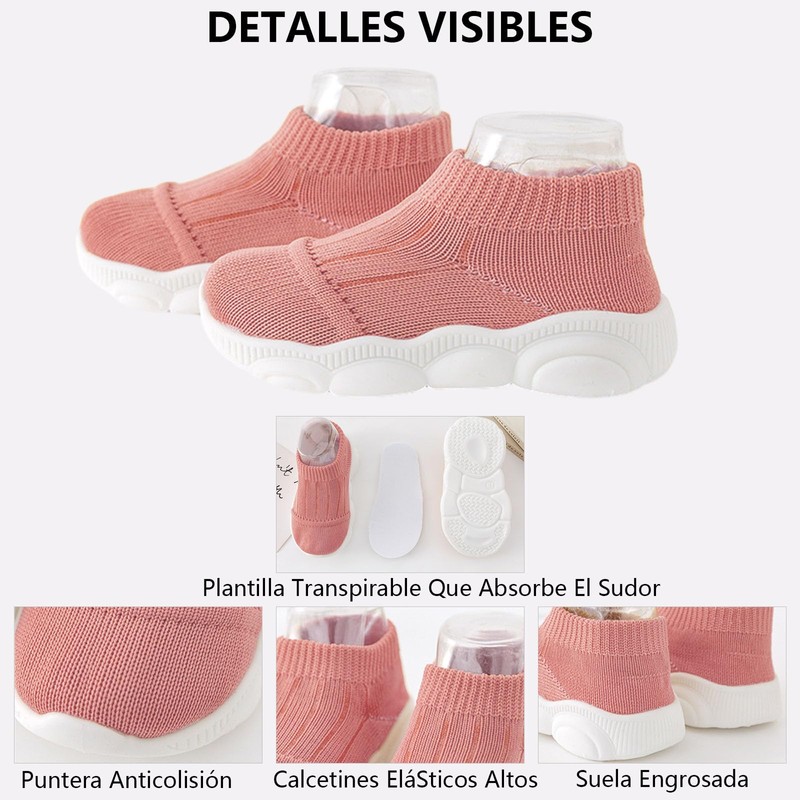 - [Tela De Alta Calidad] Zapatos Calcetín para Bebe La superficie está hecha de una parte superior tejida de algodón suave y agradable para la piel.Confeccionada en una sola pieza con tecnología de tejido con mosca, la malla es transpirable, suave y plana para adaptarse a los pies del bebé.Las suelas de los zapatos de bebé están hechas de material TPE de alta calidad, ligero y flexible.Reducir el peso del cuerpo del zapato y la presión del pie.Ayuda en el buen desarrollo de los pies del bebé.