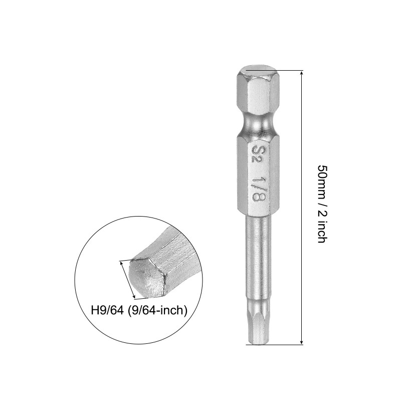 1/4" Hex Shank 9/64" Magnetic Hex Screwdriver Bit S2 Steel 2" Length 10 Pack
