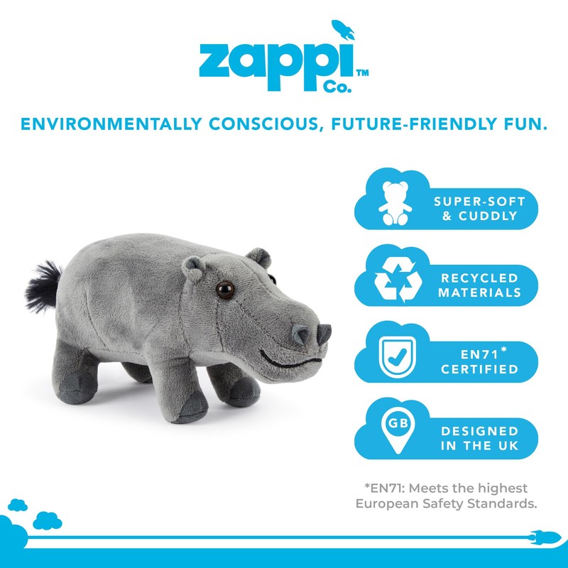 Zappi Co 100% Recycled Plush Hippo Toy (23cm Length) Stuffed Soft Cuddly Eco ...